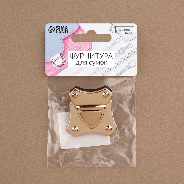 Застёжка для сумки, 4 × 4,2 см, цвет золотой