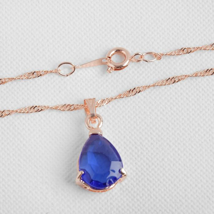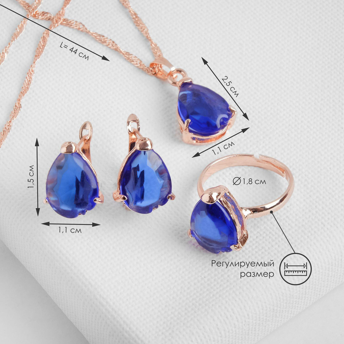 Гарнитур 3 предмета: серьги, кулон, кольцо безразмерное «Эдель» капля, цвет синий в золоте, 45 см