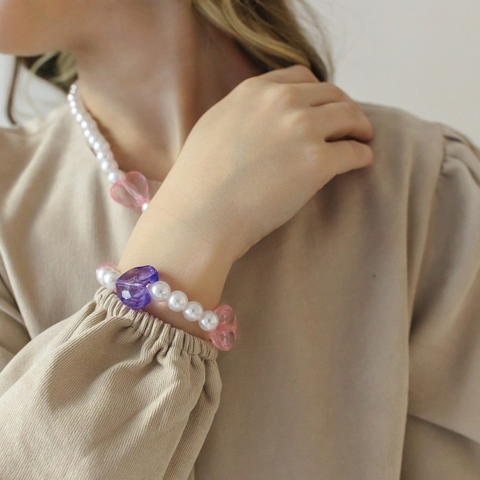 Набор детский «Выбражулька» 2 предмета: бусы, браслет, влюблённость, цветной