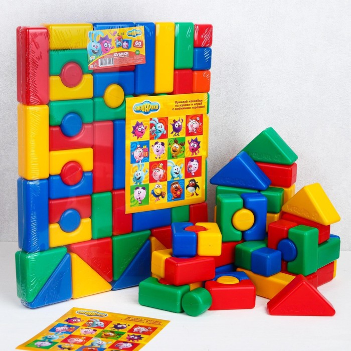 Набор цветных кубиков, "Смешарики", 60 элементов, кубик 4 х 4 см