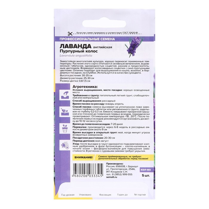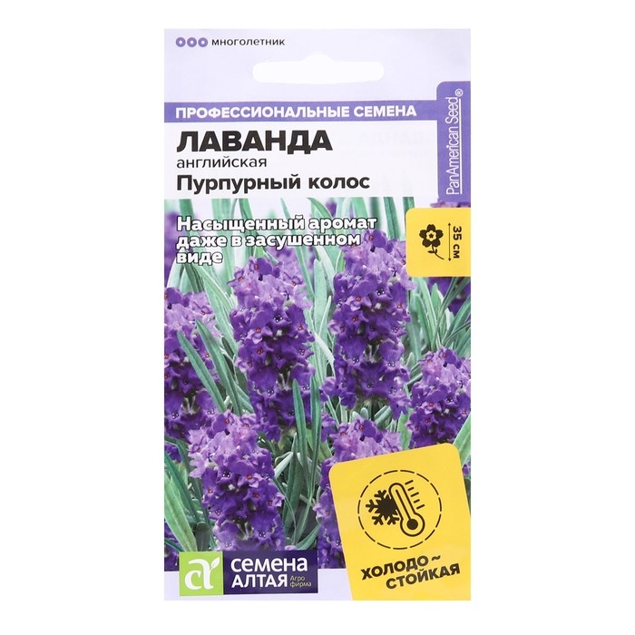 Семена цветов Лаванда "Пурпурный колос", узколистная, Сем. Алт, ц/п, 5 шт