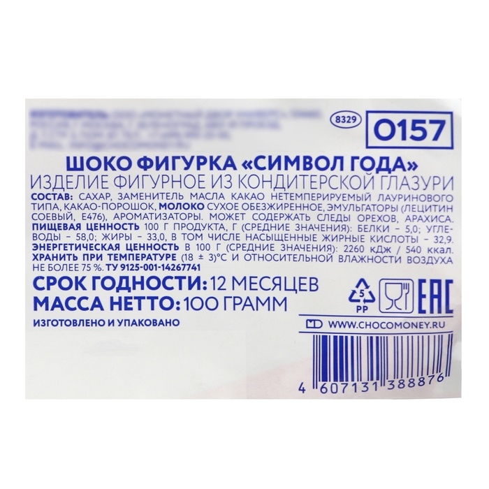Шоколадная фигурка "Символ года" в пакете, 100 г
