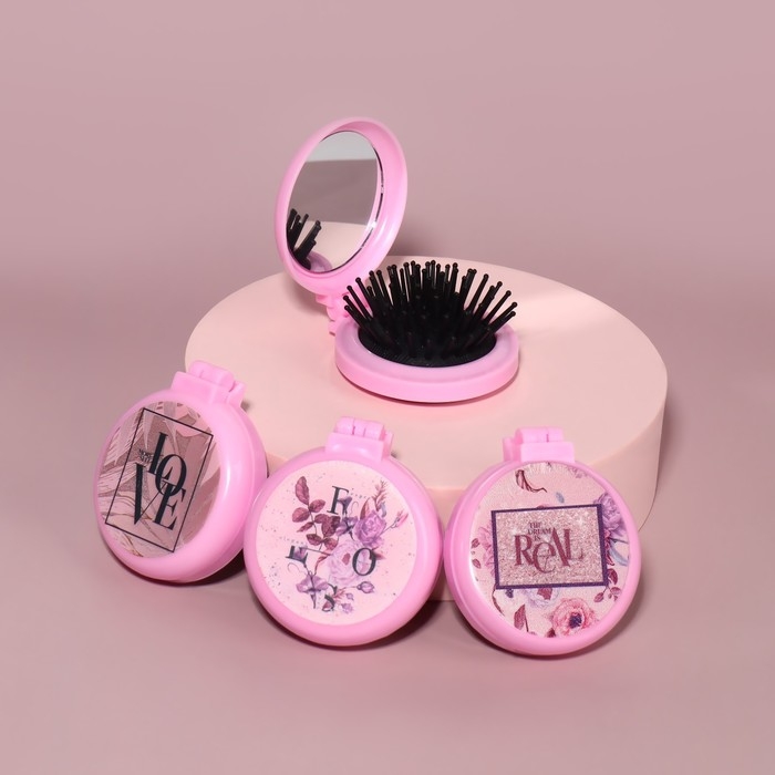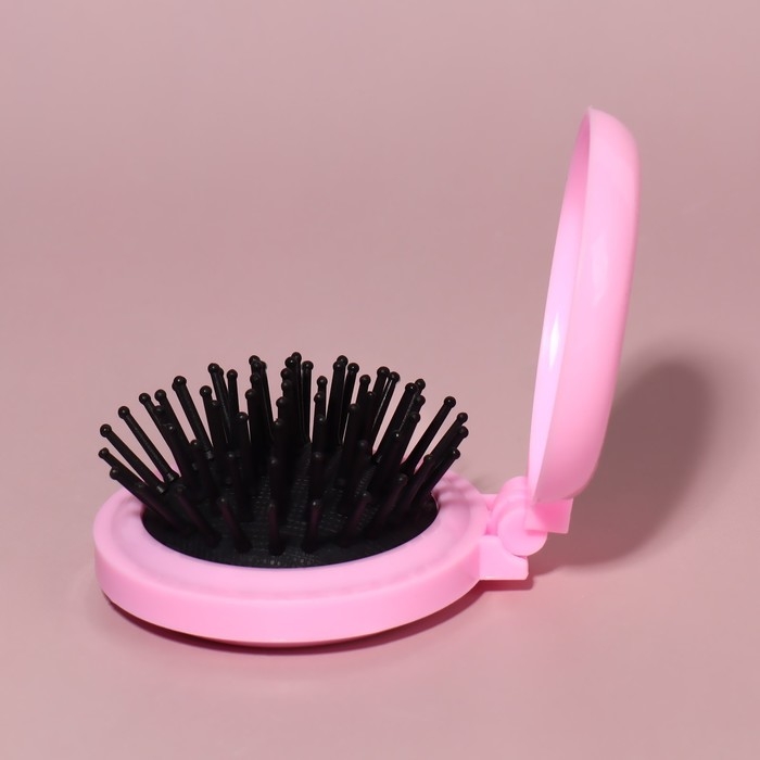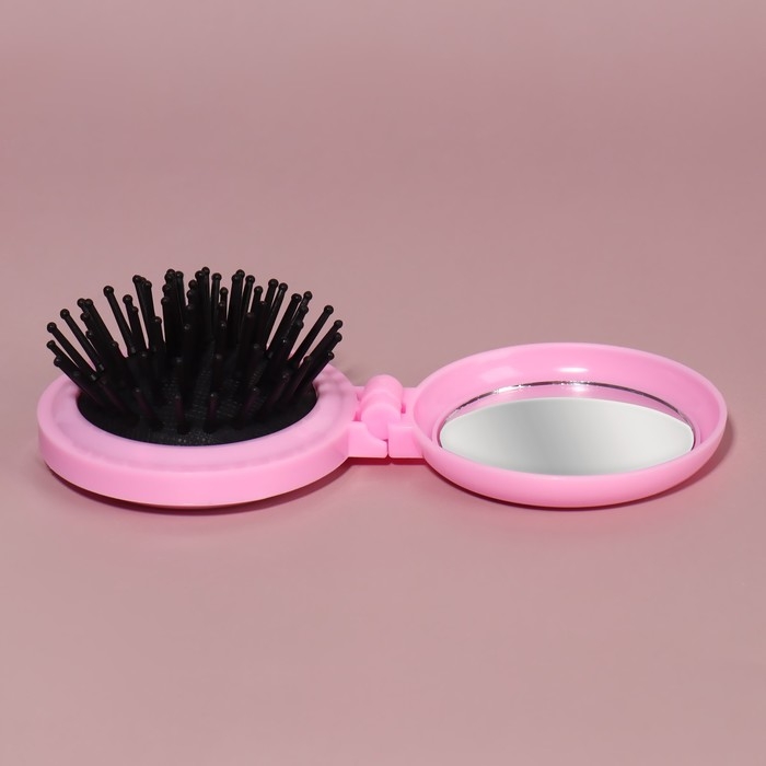 Расчёска массажная, складная, с зеркалом, d = 6,5 см, рисунок МИКС