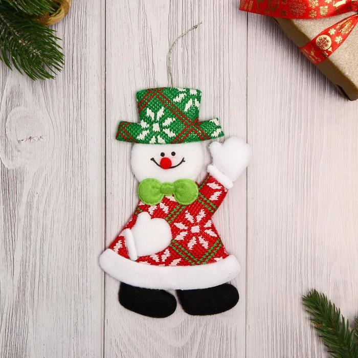 Мягкая подвеска "Снеговик" машет, 10х16 см, красно-зелёный
