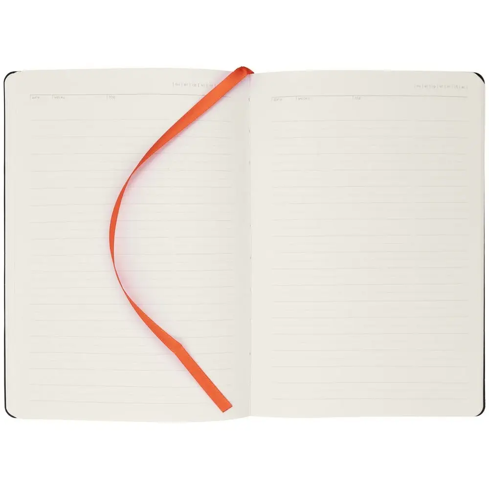 Ежедневник с гибкой обложкой, выполнен из материала Latte, оранжевый, дополнен ляссе в цвет обложки.