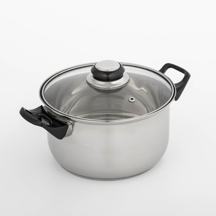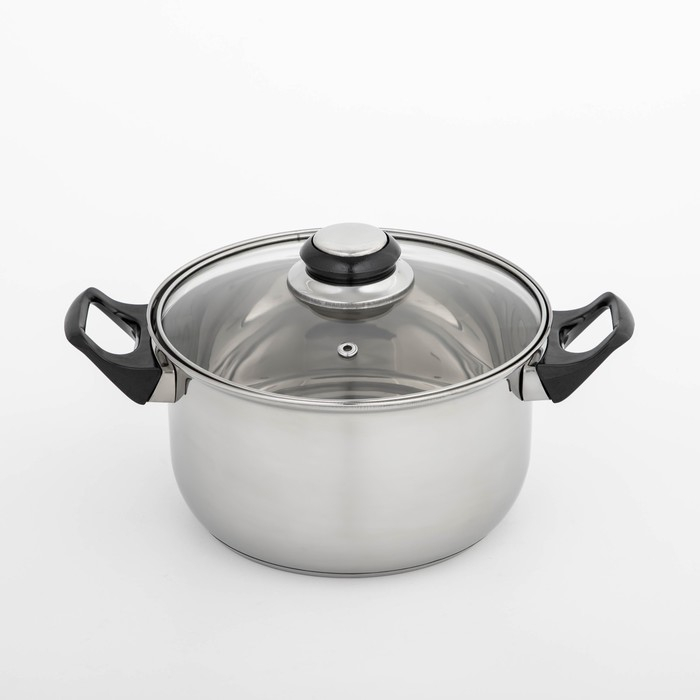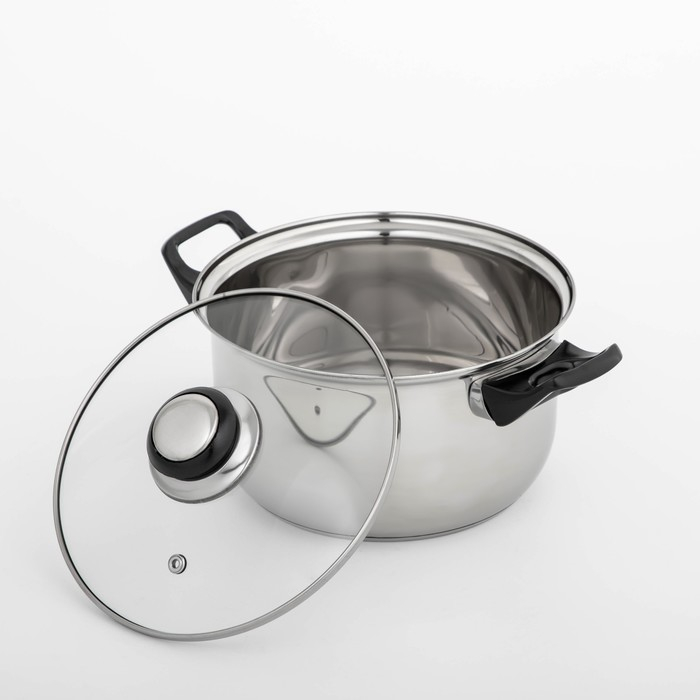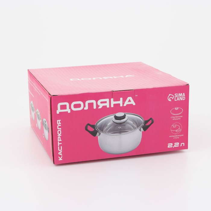 Кастрюля из нержавеющей стали Доляна «Чёрная ночь», 2,2 л, с крышкой