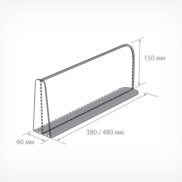 Пластиковый разделитель на Т-основании с передним ограничителем 150 мм, на магнитной основе, 480×60×150 мм