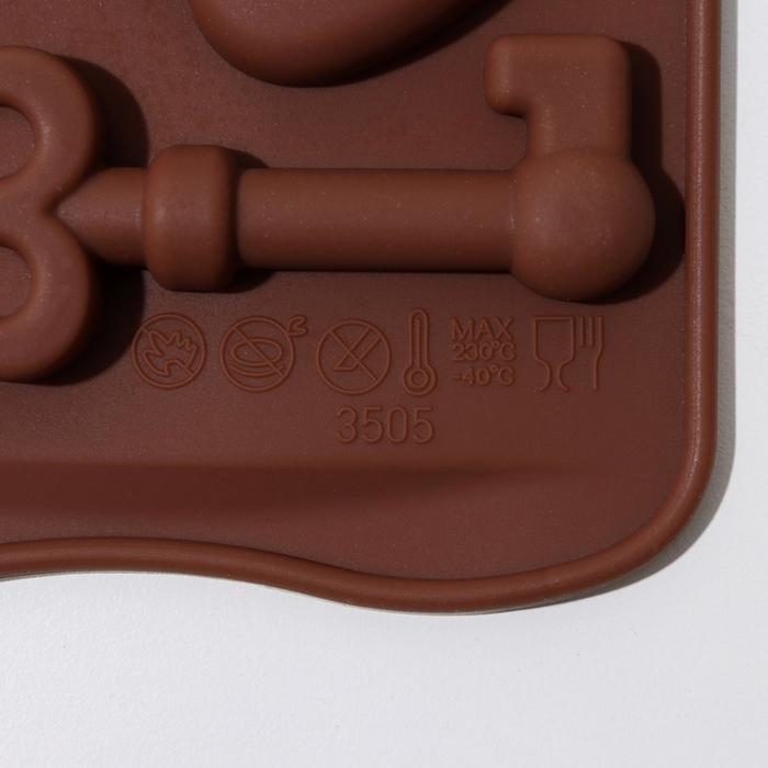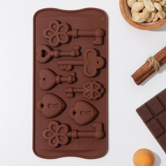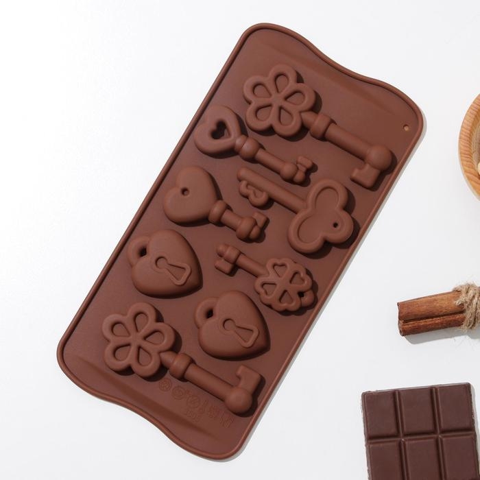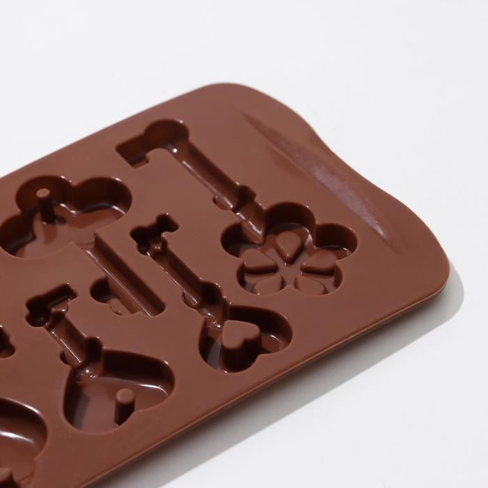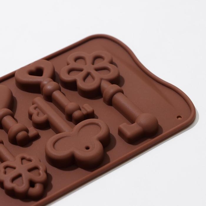Форма для кондитерских украшений Доляна «Ключики», силикон, 21×10,5×1,5 см, 8 ячеек, цвет коричневый