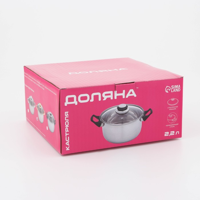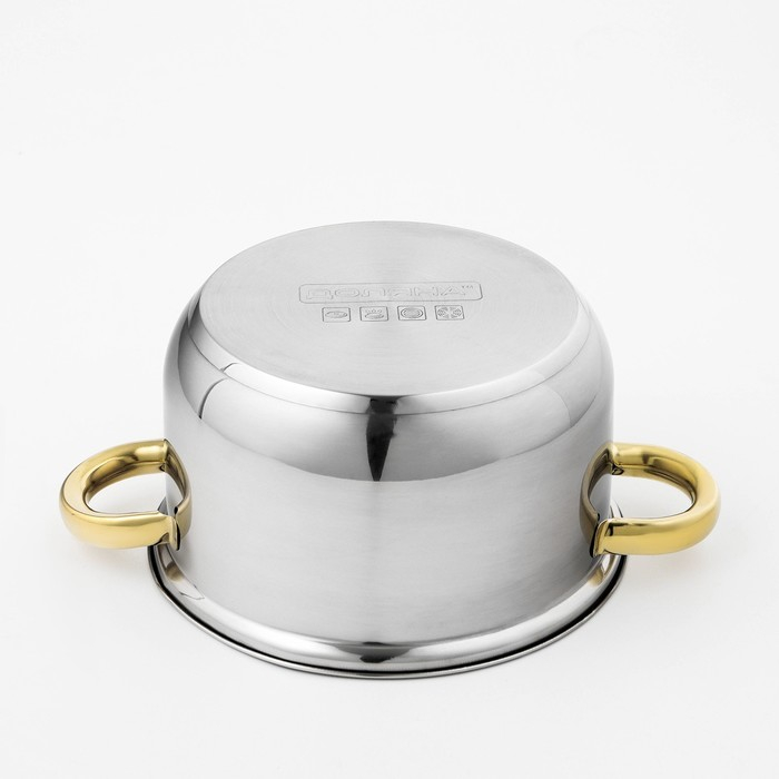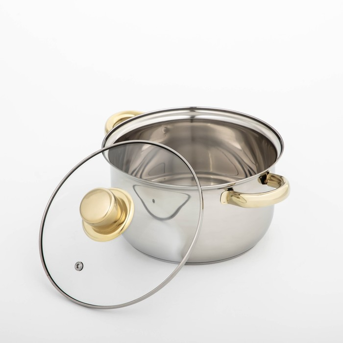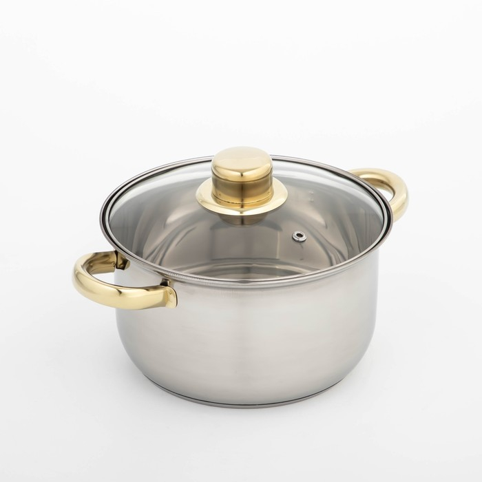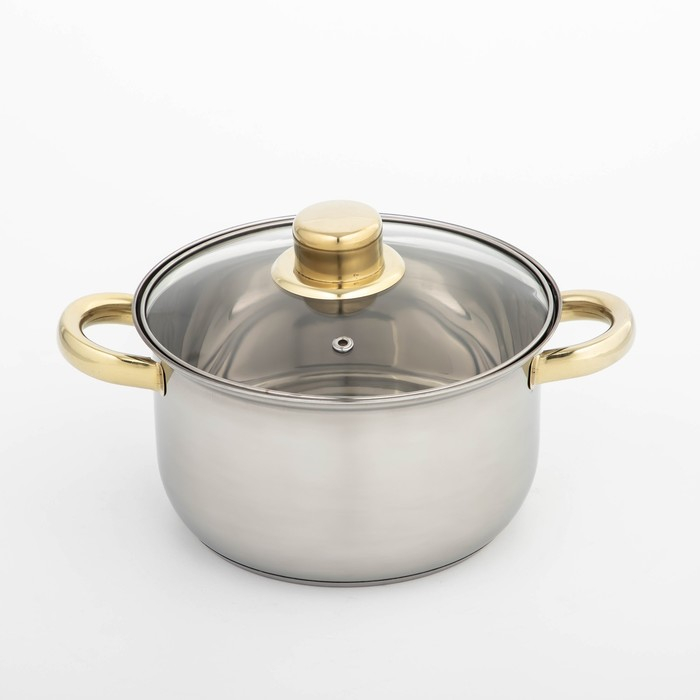 Кастрюля из нержавеющей стали с крышкой Доляна «Роскошь», 2,2 л, d=19 см