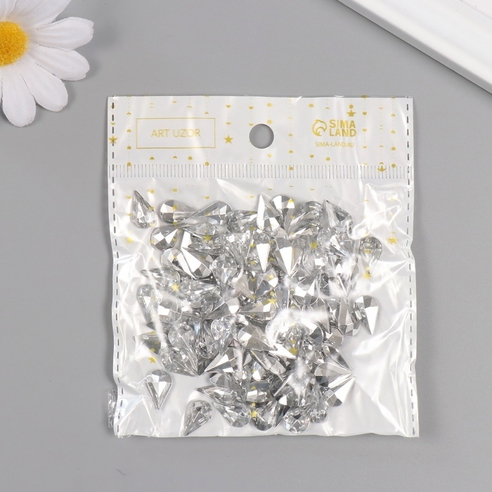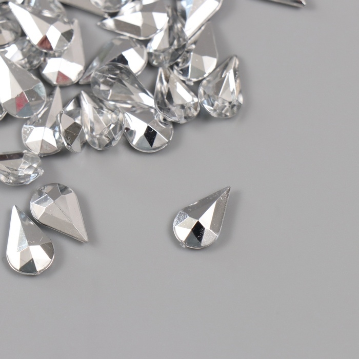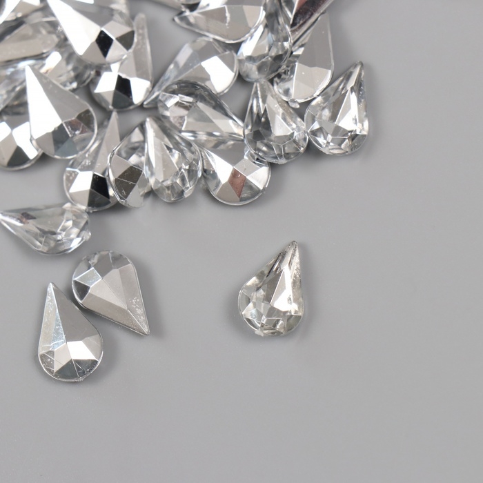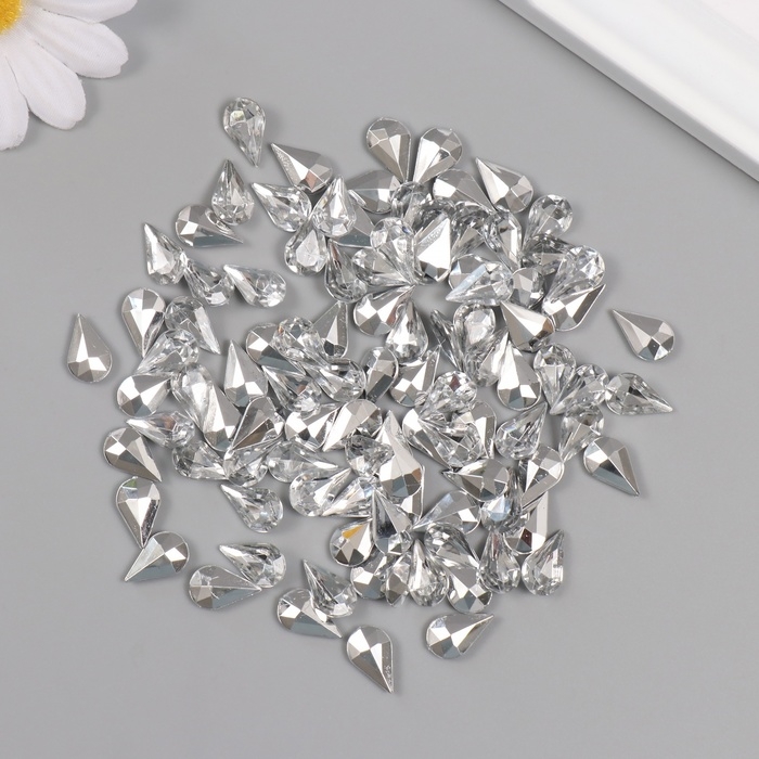 Декор для творчества пластик "Стразы капля. Серебро" набор 100 шт 0,8х1,3 см