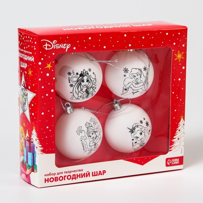 Набор для творчества на Новый год "Новогодний шар под раскраску", 4 штуки 5.5 см, Принцессы