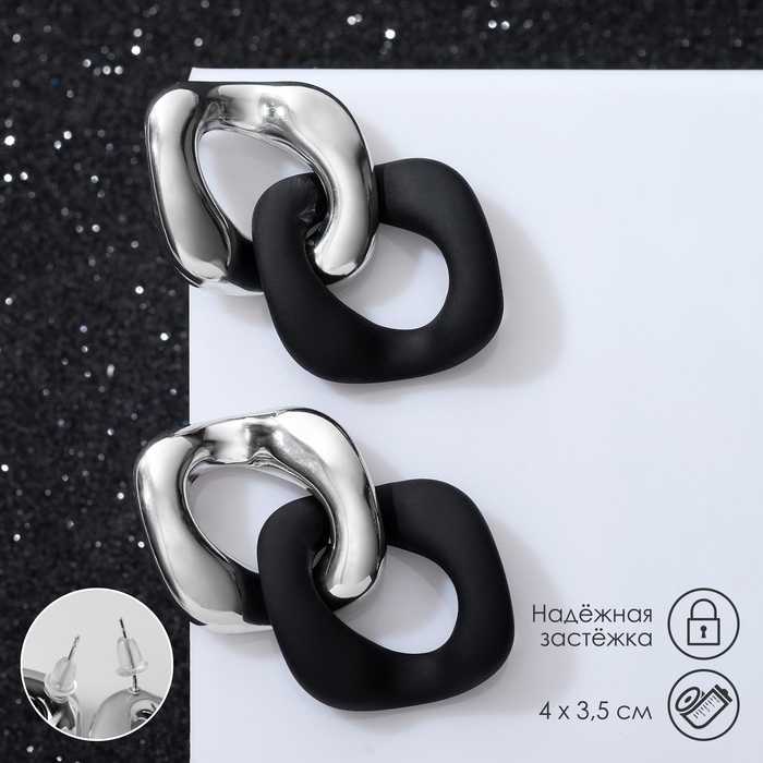 Серьги металл «Цепь» диагональ, 2 полых ромба, цвет серебристо-чёрный