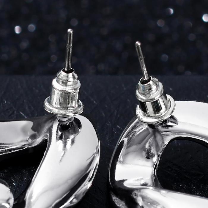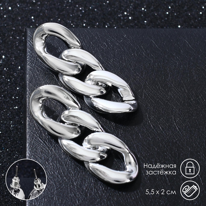 Серьги металл «Цепь» диагональные звенья, цвет серебро