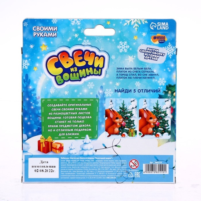 Свечи из вощины «Новый год! Новогодний шарик», новогодний набор для творчества