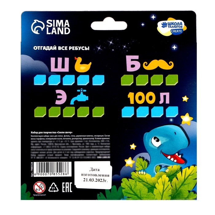 Свеча своими руками. Слепи свечу «Милый динозавр», набор для творчества