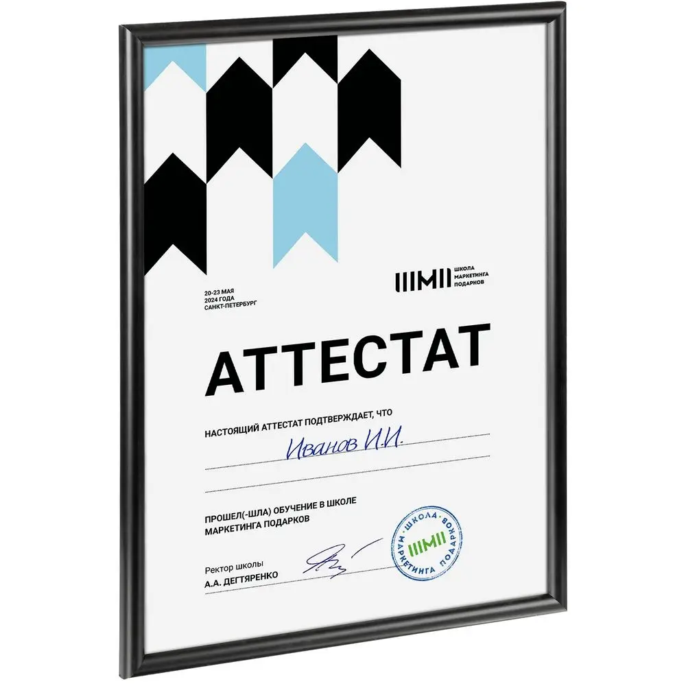 Рамка формата А3 в черном цвете прекрасно подойдет для оформления дипломов, сертификатов, грамот, лицензий или фотографий. Поставляется в термоусадочной пленке.