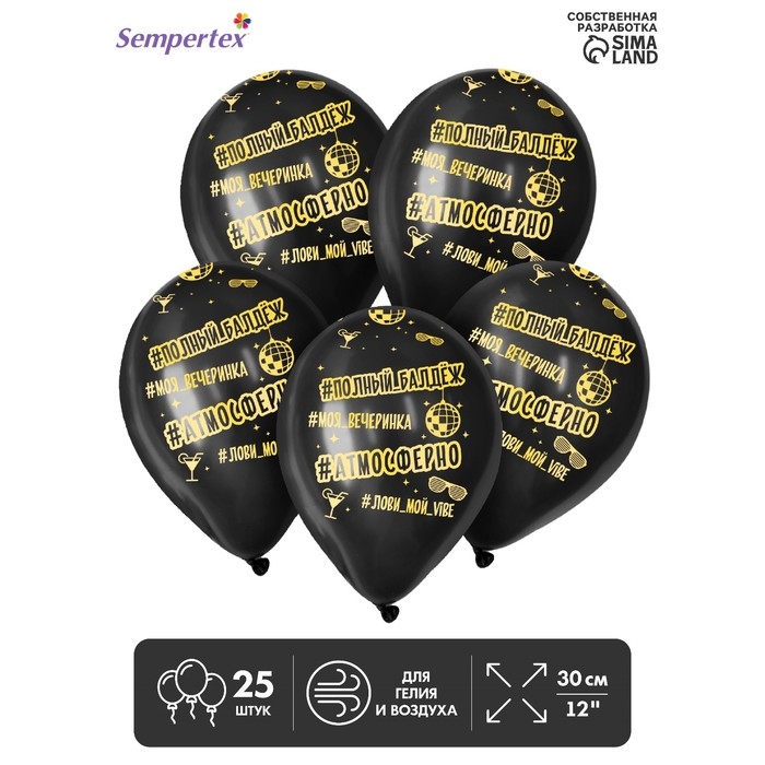 Воздушный шар латексный 12" «Атмосферненько», пастель, цвет чёрный, 25 шт.