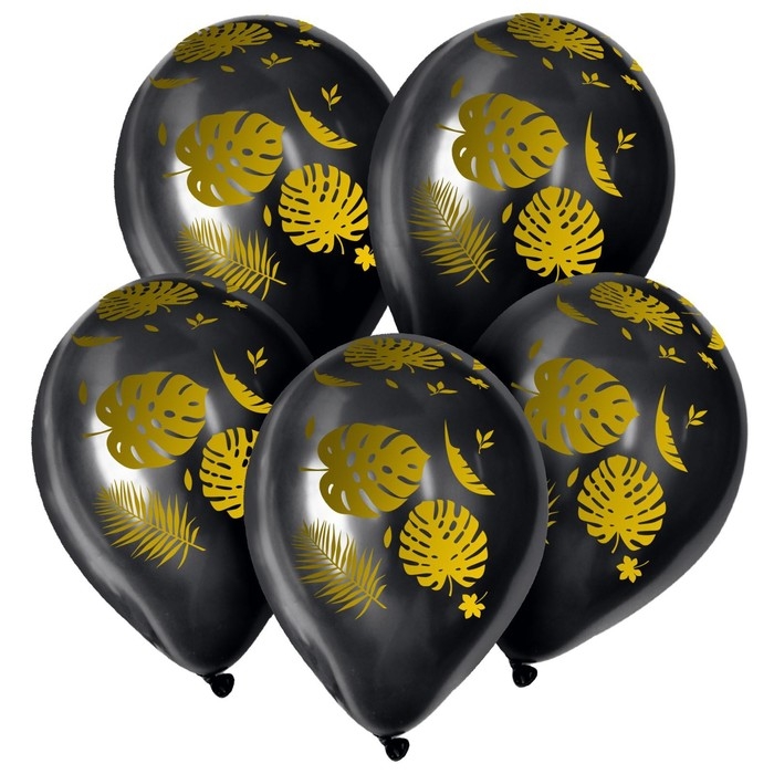 Воздушный шар латексный 12" «Листья», пастель, цвет чёрный, 25 шт.