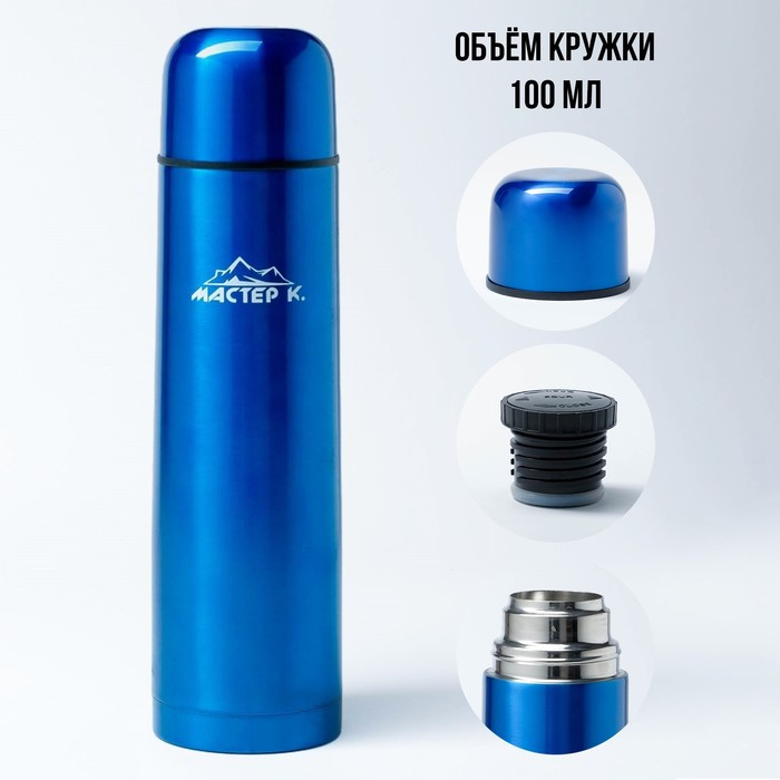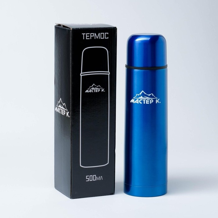 Термос, 500 мл, Гильза "Мастер К", с кружкой, сохраняет тепло 24 ч, синий