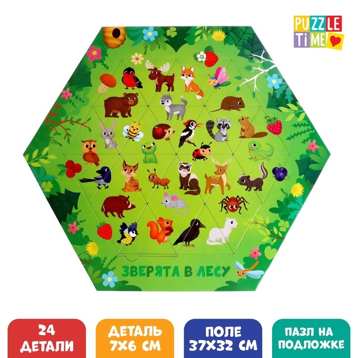 Фигурный пазл «Зверята в лесу», на подложке, 24 детали