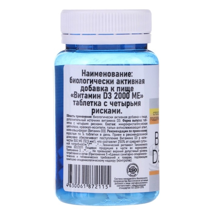 Состав: микрокристаллическая целлюлоза, крахмал, тальк, холекальциферол (Витамин D3).