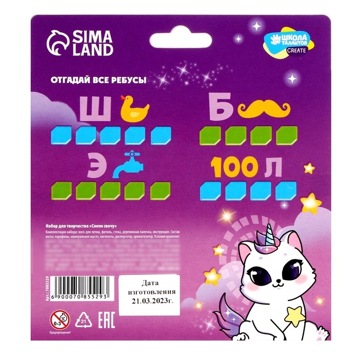 Свеча своими руками. Слепи свечу «Котёнок на луне», набор для творчества