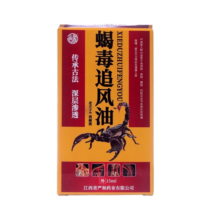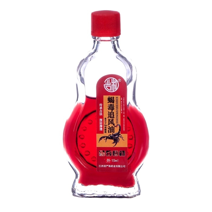 Состав: борнеол, мята полевая, камфора, кордицепс, гвоздичное масло, скипидар, грушанка, эвкалипт, сычуаньский перец, масло цитронеллы, эфирное масло лицеи кубебы, экстракт яда скорпиона.