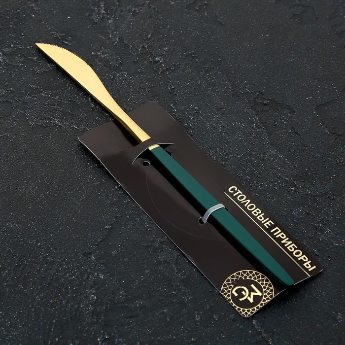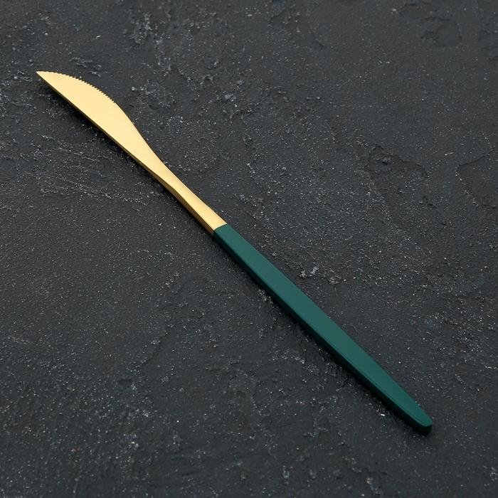 Нож столовый из нержавеющей стали Magistro «Блинк», длина 22 см, цвет золотой, зелёная ручка