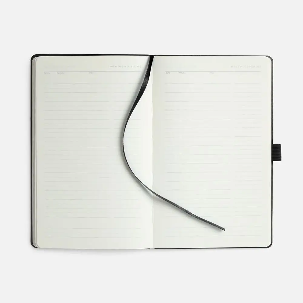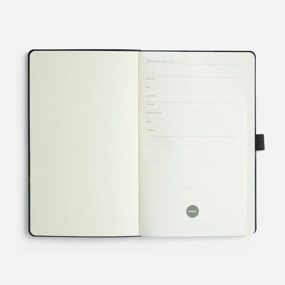 Ежедневник с гибкой обложкой, выполнен из материала Espresso, дополнен цветными ляссе и петлей-резинкой для ручки.