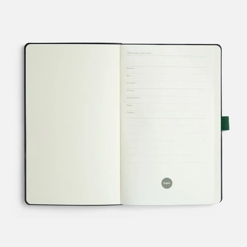 Ежедневник с гибкой обложкой, выполнен из материала Espresso, дополнен цветными ляссе и петлей-резинкой для ручки.