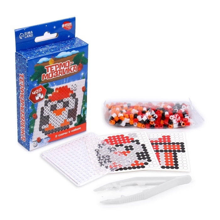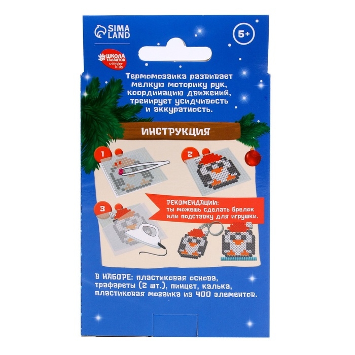 Термомозаика на новый год «Пингвинчик» с пинцетом, новогодний набор для творчества