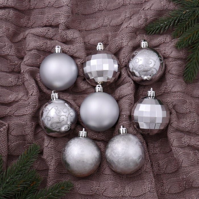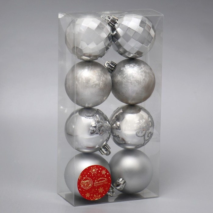 Набор шаров пластик d-6 см, 8 шт "Диско ассорти" серебро