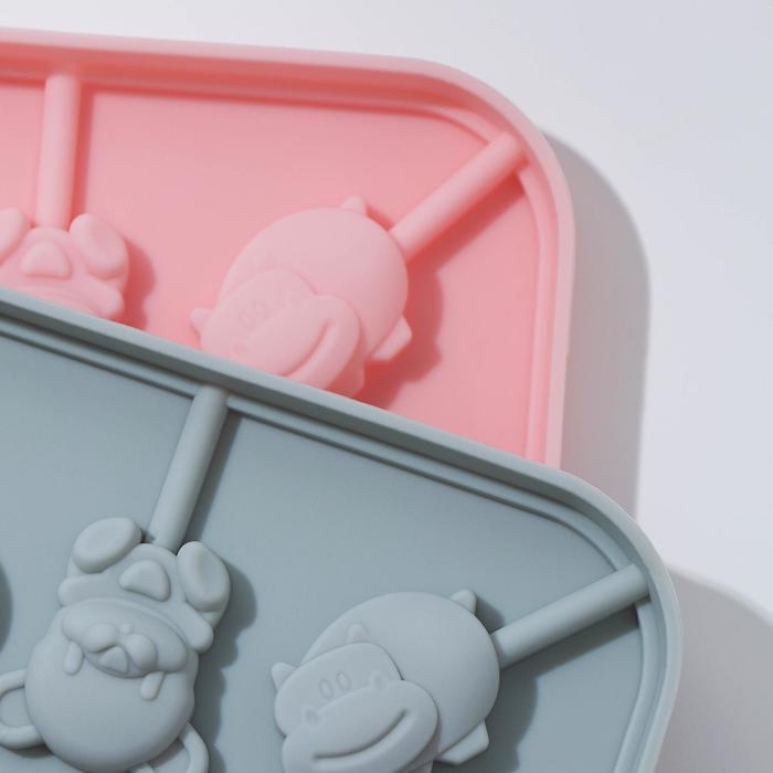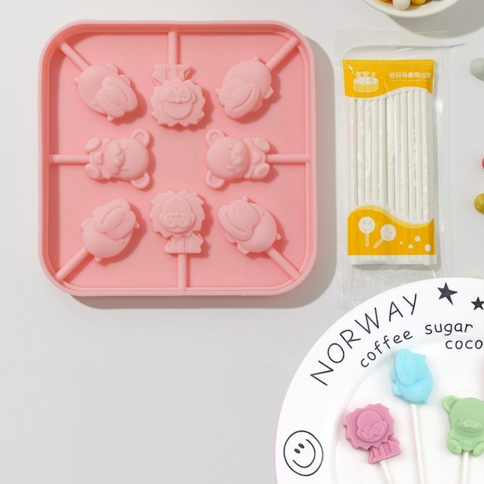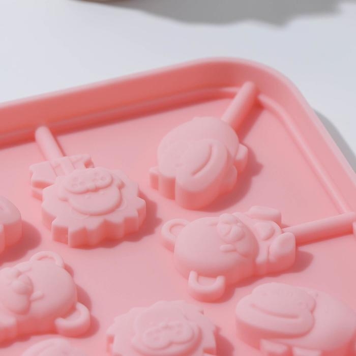 Форма для леденцов «Зоопарк», силикон, 14,5×14,5×1,5 см, 8 ячеек (3×2,5 см), с палочками, цвет МИКС