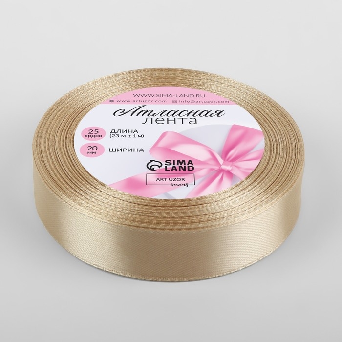 Лента атласная, 20 мм × 23 ± 1 м, цвет светло-бежевый №173
