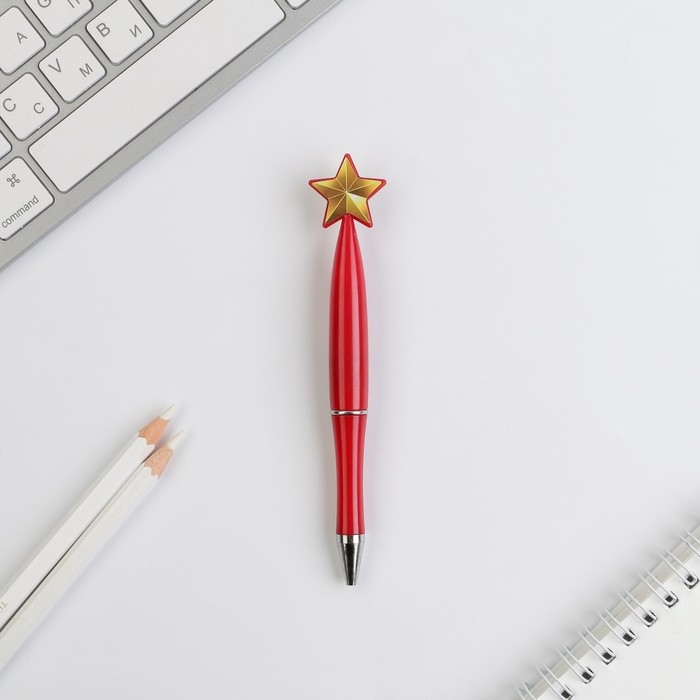 Ручка шариковая синяя паста, пластиковая со звездой "С 23 Февраля"