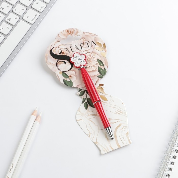 Ручка шариковая синяя паста «Цветок»,пластик, на подложке 8 марта