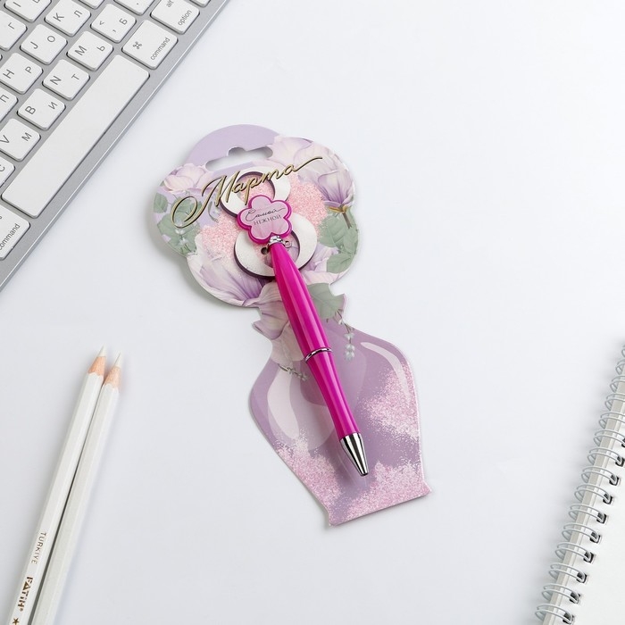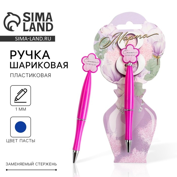 Ручка шариковая синяя паста «Цветок»,пластик, на подложке 8 марта
