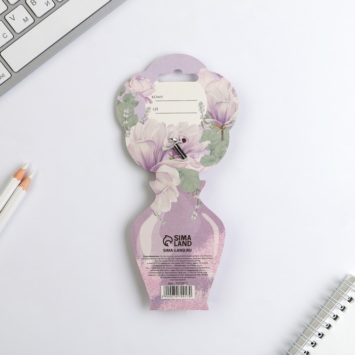 Ручка «8 Марта»,пластик, с цветок, на подложке-ваза