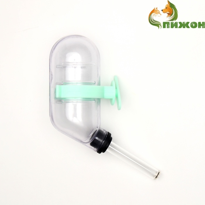 Поилка для грызунов, 60 мл, прозрачная с зелёным креплением