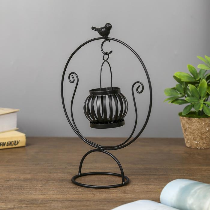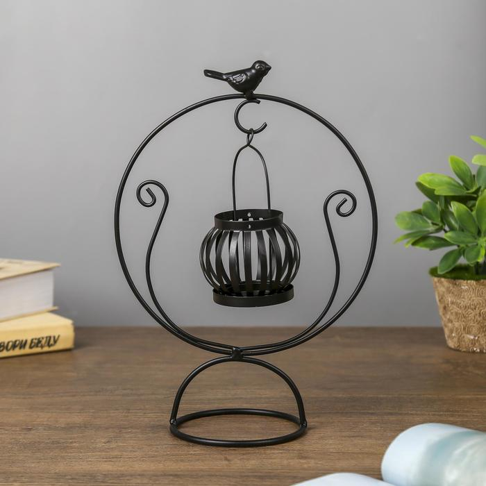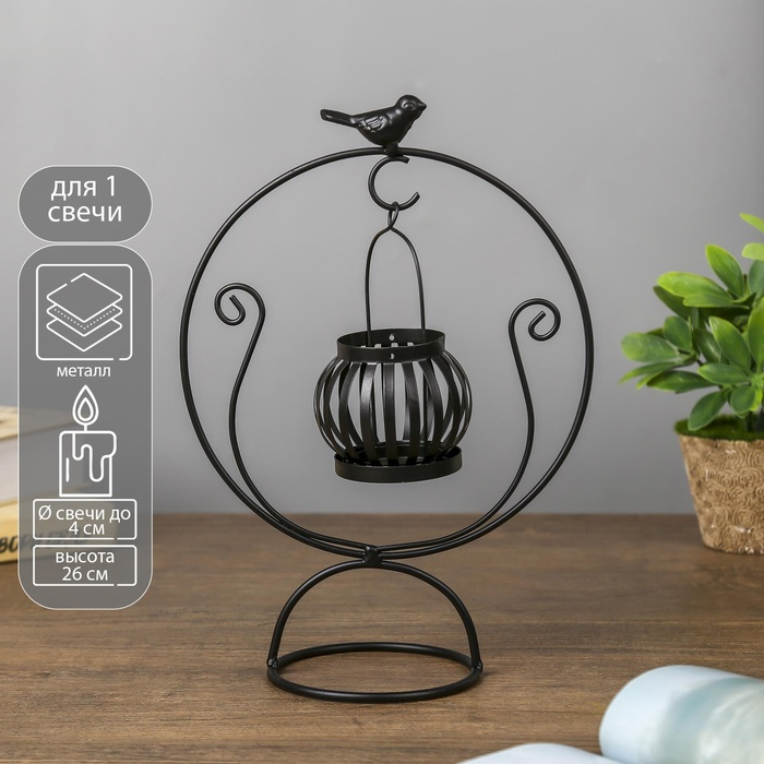 Подсвечник металл на 1 свечу "Круглая качель" чёрный 26х17,5х10,5 см