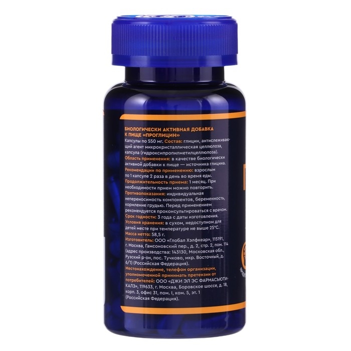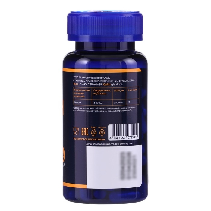 Состав: 2 вегетарианские капсулы (суточная доза) содержат: глицин — 800 мг.