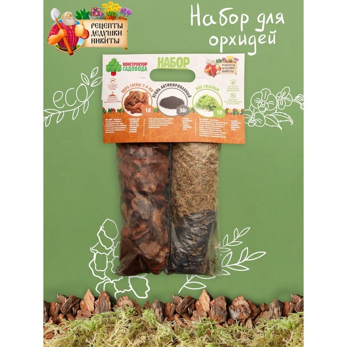Набор для орхидей Кора 2-6 фр+Мох+ Уголь. 50 г. "Рецепты Дедушки Никиты" 1+1 л.