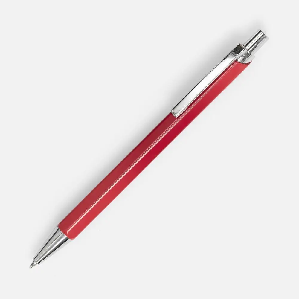 Металлическая шариковая ручка в глянцевом шестигранном корпусе с хромированными деталями.