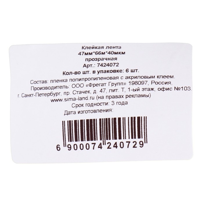 Состав: BOPP пленка, акриловый клей.