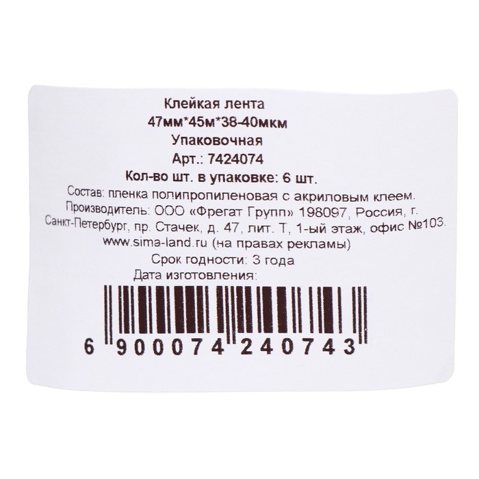 Состав: BOPP пленка, акриловый клей.