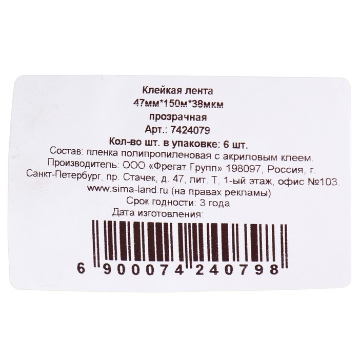Состав: BOPP пленка, акриловый клей.