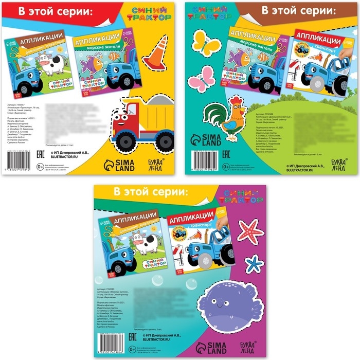 Набор книжек-аппликаций «Синий трактор», 16 стр., 19 × 19 см