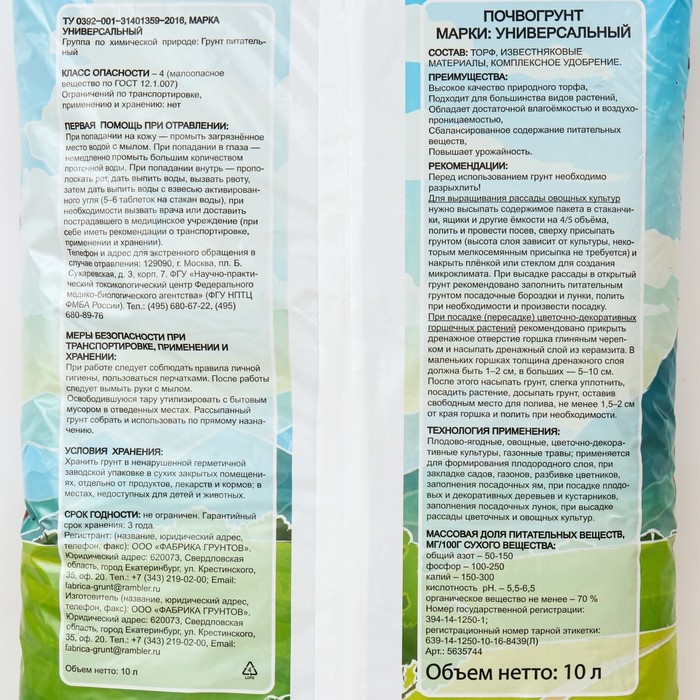 Применение: для выращивания огурцов, помидоров, перцев, капусты, картофеля, моркови, свеклы, редиса, лука, укропа, петрушки, садово-ягодных культур, однолетних и многолетних цветов, комнатных растений.
