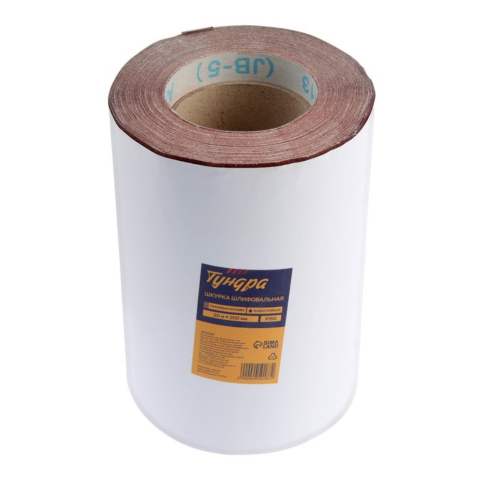 Шкурка шлифовальная в минирулонах ТУНДРА, на тканевой основе водостойкая, 200мм х 20м, Р150