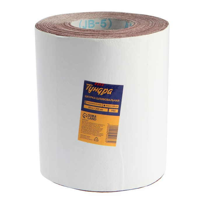 Шкурка шлифовальная в минирулонах ТУНДРА, на тканевой основе водостойкая, 200мм х 20м, Р60